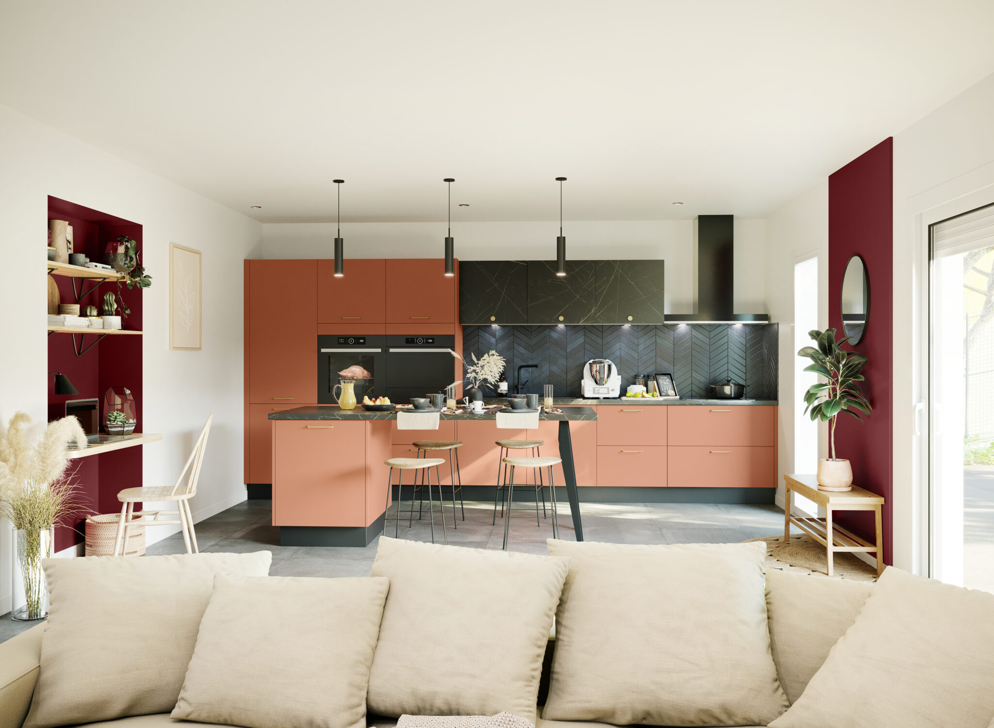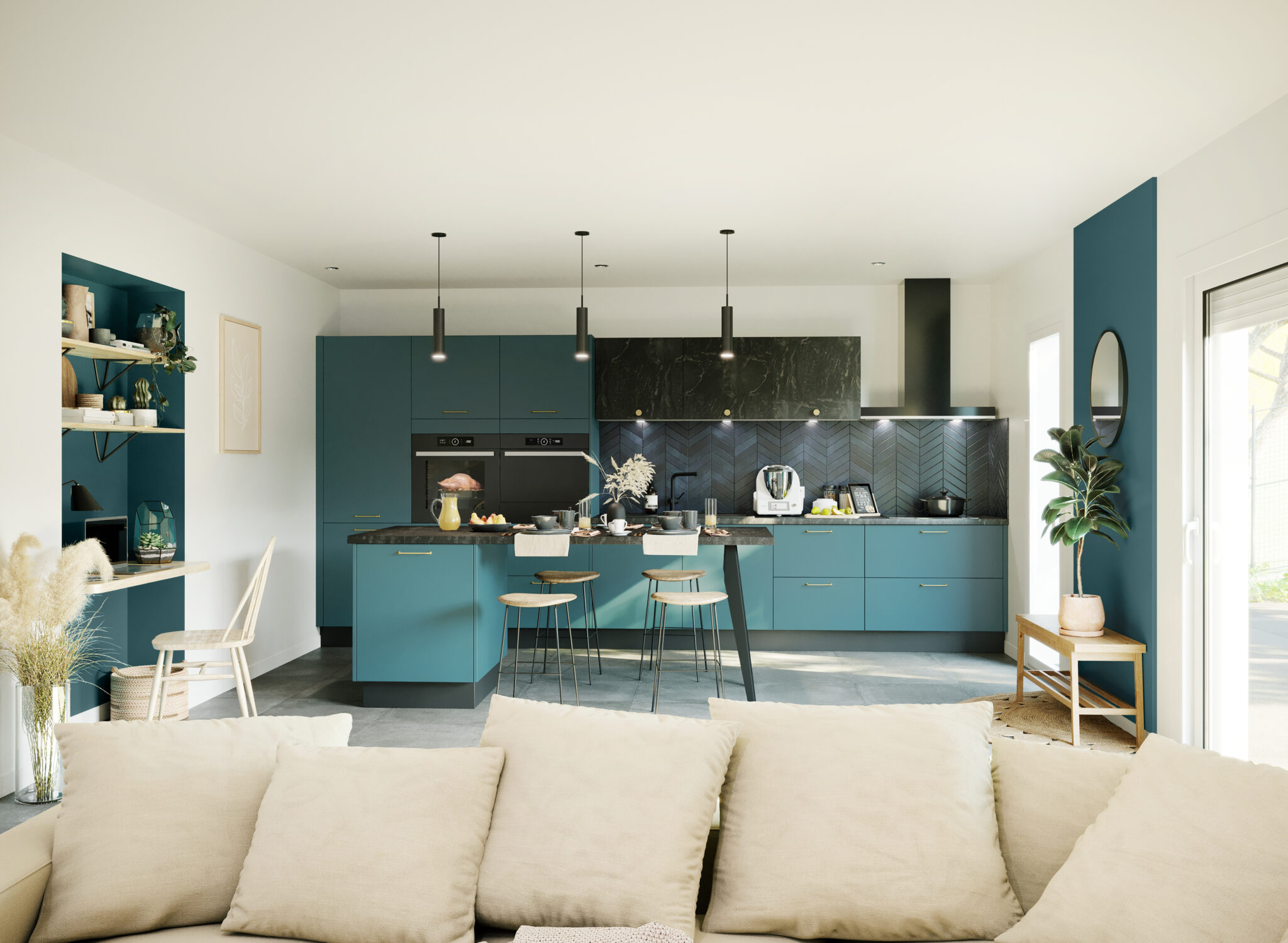 L’une des évolutions les plus marquantes concerne la place de la cuisine dans la maison. En 2026, elle n’est plus pensée comme un espace technique, mais comme une continuité du séjour.